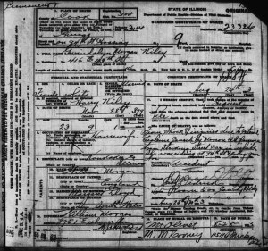 [ii] “Kiley, Gwendolyn Morgan; Death Certificate No. 23326, August 24, 1923, State of Illinois, Department of Health – Division of Vital Records, Chicago, Illinois.  Standard Certificate of Death.